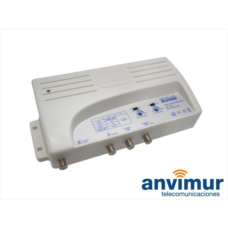 Central amplificadora de satélite con mezclador TV/SAT, ganancia de hasta 40dB, paso de corriente 13v/18v y regulador de pendiente SAT. Con filtro LTE incorporado. Rover