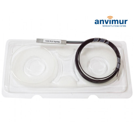 Optical PLC (Planar Light Circuit) Splitter with 1 input and 32 outputs, WITHOUT connectorization, fiber G657A1, cable diameter 0,25mm (250µm), length 1.5 meter and dimensions 50x7x4mm.