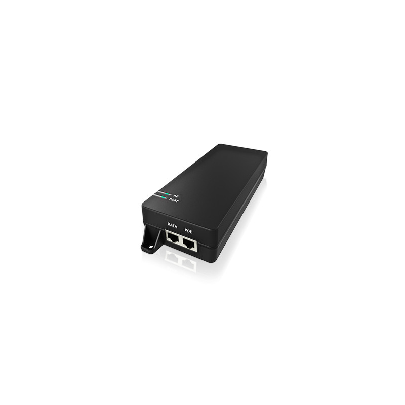 Single-port PoE adapter that powers APs over Ethernet where only electrical power is available. Compliant with IEEE 802.3at/af, supports 1 Gbps, and features two RJ45 ports: one for network connection and one for data + power delivery. Ideal for indoor and outdoor use.